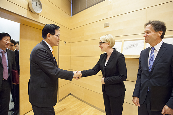 The Speaker of the National Assembly of the Republic of Korea Mr. Chung Ui-Hwa visited Parliament on Monday 5th October. He was welcomed by Speaker of Parliament Ms. Maria Lohela and Mr. Kari Uotila (in the picture), who is the chairman of the South Korea friendship group at the Finnish Parliament. Mr. Chung also met representatives of the Social Affairs and Health Committee as well as the Committee of the Future. Relations between South Korea and Finland were discussed in the meetings. In his visit to Finland, Mr. Chung also met the President of the Republic Mr. Sauli Niinistö.