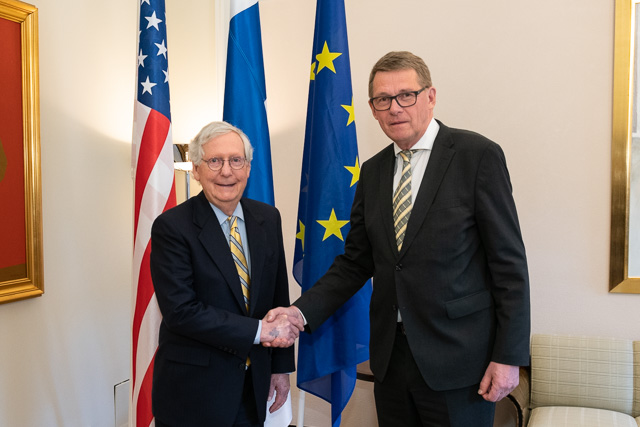 Speaker of Parliament Matti Vanhanen met United States Senate Republican Leader Mitch McConnell and Republican Senators John Barrasso, Susan Collins and John Cornyn in Parliament on Monday, 16 May 2022. Vice Speaker Antti Rinne and the chairs of parliamentary groups will also attend the lunch meeting.