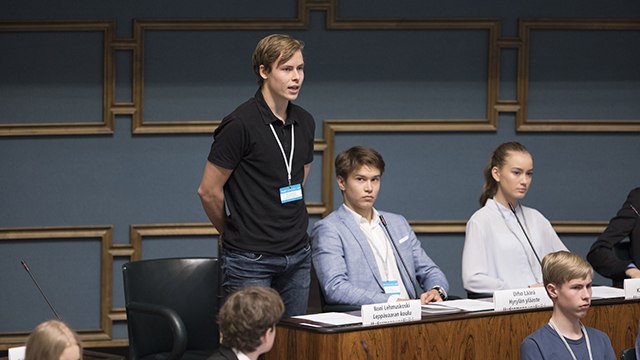 Nuorten parlamentin istuntoon 20.3.2026 ilmoittautuneet koulut saavat kukin yhden tai kaksi oppilasedustajapaikkaa. Jokainen koulu voi lähettää täysistuntoa varten yhden suullisen kysymyksen. Koulut toimittavat kysymykset sähköisellä lomakkeella, joka avataan joulukuussa 2025. Lomake tulee löytymään täältä. Valinta päiväjärjestykseen tehdään kaikkien määräaikaan 9.1.2026 mennessä lähetettyjen kysymysten pohjalta.