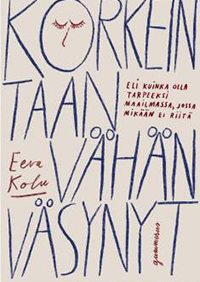 ​Jos teen vielä tämän, tai saavutan seuraavan tavoitteen, niin sitten helpottaa. Eeva Kolun Korkeintaan vähän väsynyt -teos kuvaa nykypäivän elämää hänen omista kokemuksistansa käsin. Aikaa, jossa rakennetaan uraa, eletään aktiivista vapaa-aikaa, syödään terveellisesti, luodaan kaunis sometili ja ollaan hyviä äitejä, tyttöystäviä, pidetään kunnosta ja ulkonäöstä huolta ja kulutetaan valveutuneesti. Ja mitä tästä voi seurata.