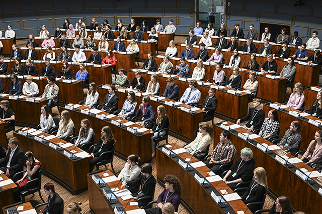 Nuorten parlamentti -tapahtuma järjestettiin Eduskuntatalolla perjantaina 12. huhtikuuta. Tapahtuma alkoi aamulla Eduskuntatalon Valtiosalista, jossa jännittyneet ja innokkaat kahdeksas- ja yhdeksäsluokkalaiset eri puolilta Suomea kokoontuivat aamupalalle. Paikalle saapui arviolta 330 nuorta ja 150 opettajaa.