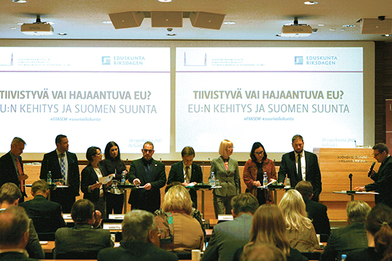 Suuri valiokunta ja Ulkopoliittinen instituutti (UPI) järjestivät torstaina 28.9. seminaarin Tiivistyvä vai hajaantuva EU? EU:n kehitys ja Suomen suunta.