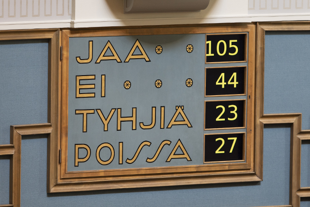 Äänin 105-44 eduskunta päätti, että valtioneuvosto nauttii eduskunnan luottamusta. Katso tarkka äänestystulos.