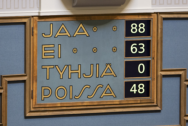 Äänin 88-63 eduskunta päätti, että valtioneuvosto nauttii eduskunnan luottamusta. Katso tarkka äänestystulos.