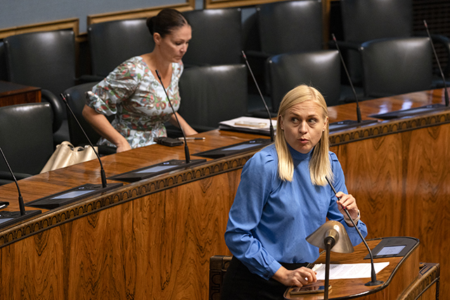 ​Ulkoministeri Elina Valtonen esitteli valtioneuvoston ulko- ja turvallisuuspoliittisen selonteon täysistunnossa 10.9.2024.
