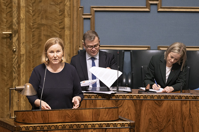 Sosiaali- ja terveysministeri Kaisa Juuso (ps.) antoi keskiviikkona 2.4. hallituksen vastauksen viiden oppositioryhmän välikysymykseen, jonka aiheena ovat sotepalveluiden ja koulutuksen leikkaukset.