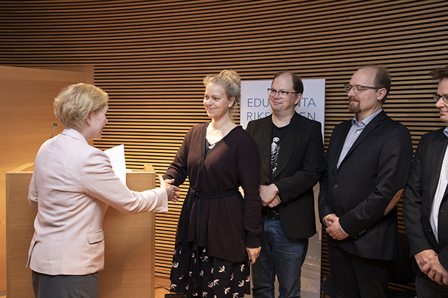 Kuvassa aloitteen vastaanottanut eduskunnan lainsäädäntöjohtaja Tuula Kulovesi, Greenpeace Suomen maajohtaja Sini Harkki, Luonnonsuojeluliiton puheenjohtaja Harri Hölttä, Natur och Miljö -järjestön toiminnanjohtaja Bernt Nordman ja BirdLife Suomen toiminnanjohtaja Aki Arkiomaa.