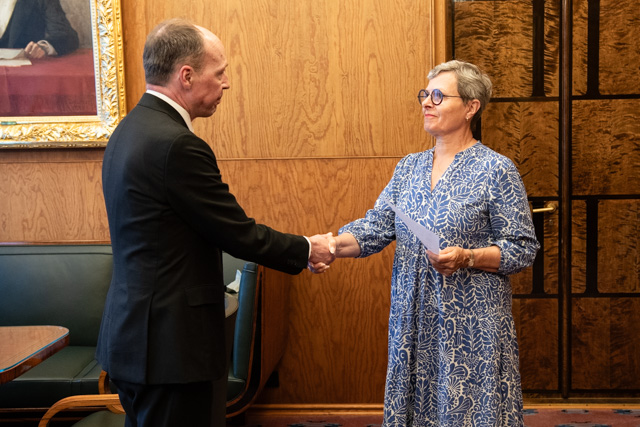 Uudet kansanedustajat Maaret Castrén ja Martin Paasi esittivät valtakirjansa puhemies Jussi Halla-aholle eduskunnassa keskiviikkona 26. kesäkuuta. Uusien kansanedustajien edustajantoimi alkaa 16. heinäkuuta.