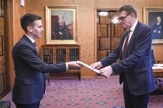 Matias Mäkynen (sd.) esitti valtakirjansa eduskunnan puhemiehelle Matti Vanhaselle tiistaina 3. joulukuuta. Mäkynen nousi eduskuntaan Vaasan vaalipiiristä varasijalta EU-komissaariksi siirtyneen Jutta Urpilaisen (sd.) tilalle. Hän alkaa hoitaa edustajantointaan tänään.
