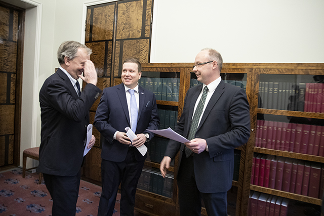 Välikysymyksen vastaanotti eduskunnan istuntoyksikön päällikkö Antti Linna. Välikysymyksen luovuttivat Ville Tavio (ps.) ja Harry Harkimo (liik.), joka noudatti eduskunnassa koronaviruksen vuoksi voimassa olevaa kättelykieltoa tervehdyksellä.