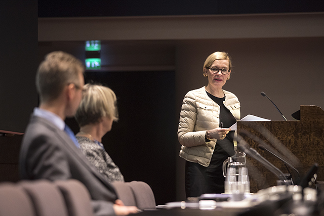 Puhemies Paula Risikko avasi tilaisuuden. Avauspuheenvuorossaan Risikko toi esiin ilmastonmuutoksen aiheuttamat vaikutukset, jotka tuovat haasteita asumiseen, työhön, terveyteen, kulutukseen ja ruuantuotantoon.