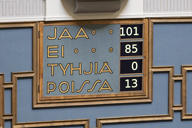 Hallitus sai eduskunnan luottamuksen äänin 101-85 täysistunnossa perjantaina 20. lokakuuta.
