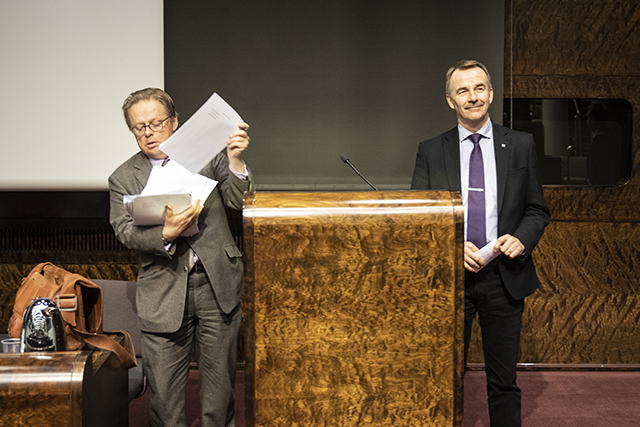 Talousvaliokunnan puheenjohtaja Juhana Vartiainen (kok.) ja varapuheenjohtaja Arto Pirttilahti (kesk.) esittelivät mietinnön tiedotustilaisuudessa heti valiokunnan kokouksen jälkeen. Katso tiedotustilaisuus täällä.