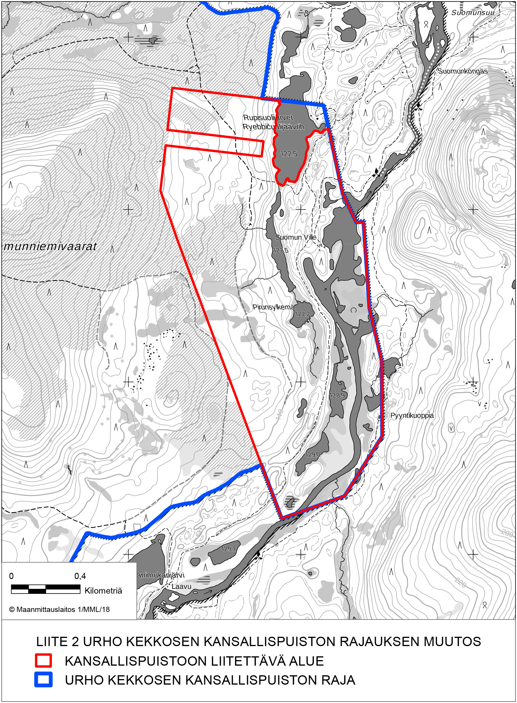 Hallituksen esitys eduskunnalle laiksi Urho Kekkosen kansallispuiston rajauksen muuttamisesta (HE 109/2018 vp).