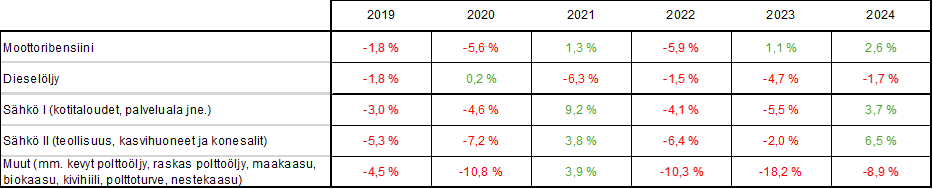 Taulukko 1. Huoltovarmuusmaksun veropohjan kannalta keskeisien erien kehitys