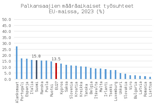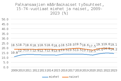 Tilastokeskuksen Työolotutkimuksessa on esitetty määräaikaisille palkansaajille heidän työmarkkina-asemaansa ja tilannettaan koskevia väittämiä. Tulokset kertovat määräaikaisten palkansaajien subjektiivisista omaa tilannettaan koskevista näkemyksistä. Viimeisimmän, vuoden 2023 tutkimuksen mukaan noin kaksi määräaikaista palkansaajaa kolmesta kaipaa vakinaisen työsuhteen turvallisuutta ja noin puolet kokee, että taloudellinen epävarmuus rasittaa ja/tai että tulevaisuuden suunnitelmien teko on hankalaa. Runsas 40 prosenttia vastasi vaihtelevansa työpaikkaa tai tehtäviä mielellään. Kuitenkin reilu 40 prosenttia myös kokee, että epävarmuus rasittaa henkisesti ja että uskaltaisi puuttua työpaikalla epäkohtiin enemmän vakinaisena. Miesten ja naisten vastauksissa on selviä eroja kolmen väittämän osalta. Määräaikaisista miehistä 47 prosenttia ja naisista 39 prosenttia sanoo vaihtavansa mielellään työpaikkaa tai tehtäviä. Määräaikaisista miehistä 41 prosenttia ja naisista 49 prosenttia kokee epävarmuuden rasittavan henkisesti. Määräaikaisessa työsuhteessa olevista naisista 15 prosenttia ja miehistä kahdeksan prosenttia kertoo kokeneensa syrjintää työsuhteen laadun vuoksi. Sutela, H., Viinikka, J. & Pärnänen, A. Työolot murrosten keskellä – Työolotutkimuksen tuloksia 1977–2023, 60–62. Helsinki: Tilastokeskus.
