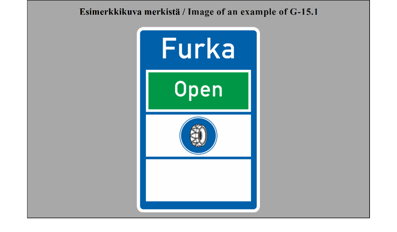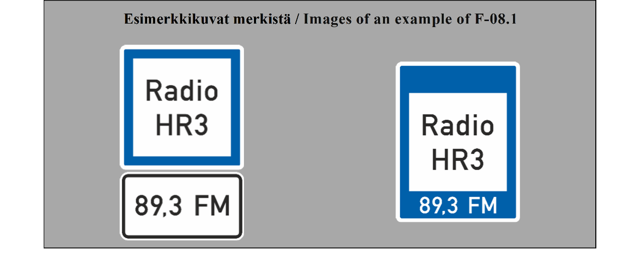 17 ARTIKLA Tien tunnistusmerkit Tien tunnistusmerkit on sijoitettava tielle, joiden tunnuksen ne ilmoittavat. Ne voidaan sijoittaa myös ennakkotiedotusmerkkeihin, tienviittoihin tai varmennusmerkkeihin. | ARTICLE 17 Road identification signs Road identification signs shall be placed along roads which they identify. They may be also placed on advance direction signs, direction signs or confirmatory signs. |