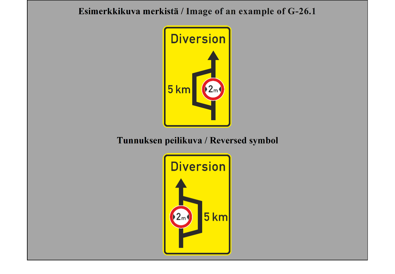 8 ARTIKLA 1. Liikennemerkkien kansainvälisen ymmärtämisen helpottamiseksi tässä yleissopimuksessa määrätty merkkijärjestelmä perustuu kullekin merkkilajille tunnusomaisten muotojen ja värien käyttöön sekä graafisten tunnusten käyttämiseen mahdollisuuksien mukaan kirjoituksen sijasta. Jos sopimuspuolet pitävät välttämättömänä sovittujen tunnusten muuttamista, on niiden tehtävä tämä muutos siten, etteivät merkkien oleelliset piirteet muutu. 1 bis. Jos muuttuvia liikennemerkkejä käytetään, myös niissä esitettävän kirjoituksen ja esitettävien tunnusten on oltava tässä yleissopimuksessa määrätyn merkki- ja opastejärjestelmän mukaisia. Jos tietyn merkki- ja opastejärjestelmän tekniset vaatimukset niin edellyttävät, erityisesti riittävän luettavuuden varmistamiseksi, eikä virheellisen tulkinnan mahdollisuutta ole, määritellyt tummat merkit ja tunnukset voidaan esittää vaaleina, jolloin vaalea pohja on vaihdettava tummaksi. Merkin ja sen reunan punaista väriä ei saa muuttaa. 2. Sopimuspuolten, jotka haluavat tämän yleissopimuksen 3 artiklan 1 kohdan a alakohdan ii alakohdan mukaisesti ottaa käyttöön merkin tai tunnuksen, jota ei ole määrätty tässä yleissopimuksessa, on pyrittävä alueelliseen sopimukseen tällaisen uuden merkin tai tunnuksen käytöstä. 3. Tämän yleissopimuksen määräykset eivät kiellä lisäämästä liikennemerkkeihin ymmärtämisen helpottamiseksi tekstiä lisäkilvessä; tällainen teksti voidaan myös sijoittaa itse merkkiin, ellei se tee merkin ymmärtämistä vaikeammaksi kuljettajille, jotka eivät voi ymmärtää kyseistä tekstiä. 4. Jos toimivaltaiset viranomaiset katsovat tarpeelliseksi täsmentää merkin tai tunnuksen merkitystä tai rajoittaa merkin voimassaolon tiettyihin ajanjaksoihin, se voidaan tehdä merkkiin lisätyllä tekstillä tämän yleissopimuksen liitteessä 1 määrätyllä tavalla tai lisäkilvellä. Jos sääntelymerkit halutaan rajoittaa tienkäyttäjiä koskeviksi tai jos tietyt tienkäyttäjät halutaan sulkea määräyksen ulkopuolelle, se tehdään lisäkilvillä liitteessä 1 olevan H osan II jakson 3 kohdan (TIENKÄYTTÄJÄN LISÄKILPI) ja 4 kohdan (LIIKKUMISESTEINEN HENKILÖ -LISÄKILPI) mukaisesti. 5. Tämän artiklan 3 ja 4 kohdassa mainittujen tekstien on oltava kirjoitettuina sopimuspuolen kansallisella kielellä ja, jos sopimuspuoli katsoo sen tarpeelliseksi, myös muilla kielillä, erityisesti Yhdistyneiden kansakuntien virallisilla kielillä. | ARTICLE 8 1. In order to facilitate international understanding of signs, the system of signs and signals prescribed in this Convention is based on the use of shapes, and colours characteristic of each class of sign and, wherever possible, on the use of graphic symbols rather than inscriptions. Where Contracting Parties consider it necessary to modify the symbols prescribed, the modifications made shall not alter their essential characteristics. 1 bis. In cases where variable message signs are used, the inscriptions and symbols reproduced on them must also conform to the system of signs and signals prescribed in this Convention. When, however, the technical requirements of a given type of system of signs and signals so warrant, particularly so as to ensure satisfactory legibility, and provided that no error of interpretation is possible, the prescribed dark-coloured signs or symbols may appear in a light colour, light-coloured backgrounds then being replaced by dark backgrounds. The red colour of the symbol of a sign and its border shall not be changed. 2. Contracting Parties wishing to adopt, in accordance with Article 3, paragraph 1 (a) (ii), of this Convention, any sign or symbol not prescribed in this Convention shall endeavour to secure regional agreement on such new sign or symbol. 3. Nothing in this Convention shall prohibit the addition, in order to facilitate the interpretation of signs, of an inscription in an additional panel; such an inscription may also be placed on the sign itself, if this does not make the sign more difficult to understand for drivers who cannot understand the inscription. 4. Where the competent authorities consider it advisable to make the meaning of a sign or symbol more explicit or to limit the application of a sign to certain periods, this can be done by inscriptions on the sign as provided in Annex 1 to this Convention or on an additional panel. If regulatory signs are to be restricted to road users or if certain road users are to be exempt from the regulation, this is done through additional panels according to Annex 1, section H, subsection II, paragraph 3 (ROAD USER PANEL) and 4 (PERSON WITH DISABILITIES PANEL). 5. The inscriptions referred to in paragraphs 3 and 4 of this Article shall be in the national language or in one or more of the national languages, and also, if the Contracting Party concerned considers it advisable, in other languages, in particular official languages of the United Nations. |