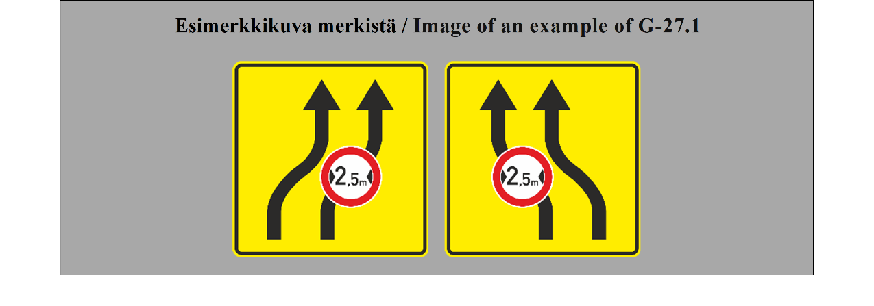 29 bis ARTIKLA 1. Jos pysyviä tiemerkintöjä muutetaan tietyksi ajaksi, erityisesti tietöiden tai kiertoteiden takia, väliaikaiset merkinnät on tehtävä eri väreillä kuin pysyvät merkinnät. 2. Väliaikaiset merkinnät ovat pysyviin merkintöihin nähden etusijalla, ja tienkäyttäjien on noudatettava niitä. Jos pysyviä ja väliaikaisia merkintöjä on näkyvissä samanaikaisesti ja ne voisivat aiheuttaa sekaannusta, pysyvät merkinnät on peitettävä tai poistettava. 3. Väliaikaisten merkintöjen on suositeltavaa olla heijastavia, ja niitä voidaan täydentää merkkivaloilla tai heijastimilla liikenteenohjauksen parantamiseksi. | ARTICLE 29 bis 1. When permanent road markings are to be modified for a specific period, in particular because of road works or diversions, temporary markings shall be applied in colours different from the colours used for permanent markings. 2. Temporary markings shall take precedence over permanent markings and road users are required to conform to them. When the simultaneous presence of permanent and temporary road markings could be a source of confusion, the permanent markings shall be covered over or removed. 3. Temporary markings shall preferably be retroreflective and may be supplemented by beacons, cat's eyes or reflectors with a view to improving traffic guidance. |