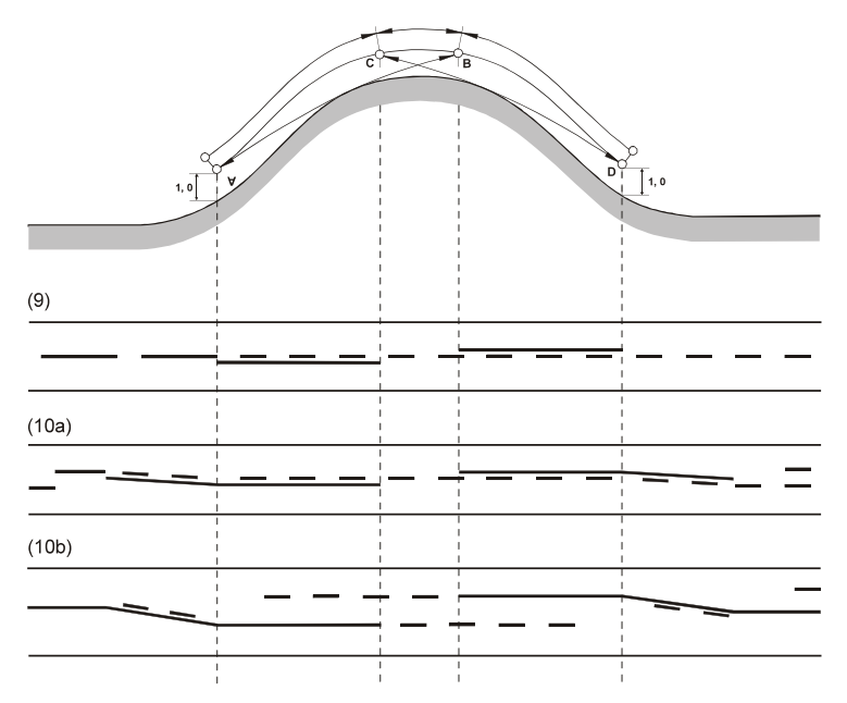 2. (a) Pitkittäisellä katkonaisen viivan muodostamalla merkinnällä ajoradalla ei ole kieltävää merkitystä, mutta sitä käytetään (i) joko rajaamaan ajokaista liikenteen ohjaamiseksi (ii) tai varoittamaan ennalta jatkuvan viivan ja sen ilmaiseman kiellon alkamisesta tai muusta erityisen vaarallisesta tieosuudesta. (b) Kun katkoviivoja käytetään tämän kohdan a alakohdan ii alakohdassa mainittuun tarkoitukseen, katkoviivan osien välisten etäisyyksien ja näiden osien pituuksien keskinäisen suhteen on oltava selvästi pienempi kuin silloin, kun niitä käytetään tämän kohdan a alakohdan i alakohdassa mainittuun tarkoitukseen. (c) Kaksoiskatkoviivaa voidaan käyttää erottamaan kaista tai kaistat, joiden liikenteen suunta voi vaihtua tämän yleissopimuksen 23 artiklan 11 kohdan mukaisesti. 3. Jos pitkittäisen merkinnän muodostaa katkoviivan viereen ajorataan sijoitettu yhtenäinen viiva, kuljettajien on huomioitava ainoastaan se viiva, joka on heidän puolellaan. Tämä määräys ei estä kuljettajia, jotka ovat suorittaneet sallitun ohituksen, palaamasta tavanomaiseen asemaansa ajoradalla. 4. Tätä artiklaa sovellettaessa pitkittäisiksi merkinnöiksi ei katsota ajoradan reunaa osoittavia pitkittäisiä merkintöjä, joiden tarkoituksena on tehdä reunat paremmin havaittaviksi, pitkittäisiä viivoja, joita käytetään yhdessä poikittaisten viivojen kanssa ajoradalla olevien pysäköintipaikkojen rajaamiseen, eikä pitkittäisiä viivoja, joilla osoitetaan pysähtymis- tai pysäköintikielto tai -rajoitus. | 2. (a) A longitudinal marking consisting of a broken line on the carriageway shall not have a prohibitory meaning, but shall be used either: (i) To demarcate lanes for the purpose of guiding traffic; or (ii) To give warning of the approach to a continuous line and the prohibition that line conveys, or of the approach to another section of road presenting a particular danger. (b) The ratio between the length of the gaps between the strokes and the length of the strokes shall be substantially smaller where broken lines are used for the purposes referred to in subparagraph (a) (ii) of this paragraph than where they are used for the purpose referred to in subparagraph (a) (i) thereto. (c) Double broken lines may be used to delineate a lane or lanes in which the direction of the traffic flow may be reversed in conformity with Article 23, paragraph 11, of this Convention. 3. Where a longitudinal marking consists of a continuous line adjacent to a broken line on the carriageway, drivers shall take account only of the line that appears on their side. This provision shall not prevent drivers who have overtaken in the manner permitted from resuming their normal position on the carriageway. 4. For the purposes of this Article, longitudinal lines used to mark the edges of the carriageway in order to make them more visible, longitudinal lines connected to transverse lines used to demarcate parking spaces on the carriageway, and longitudinal lines showing a prohibition or restrictions on standing or parking shall not be regarded as longitudinal markings. |