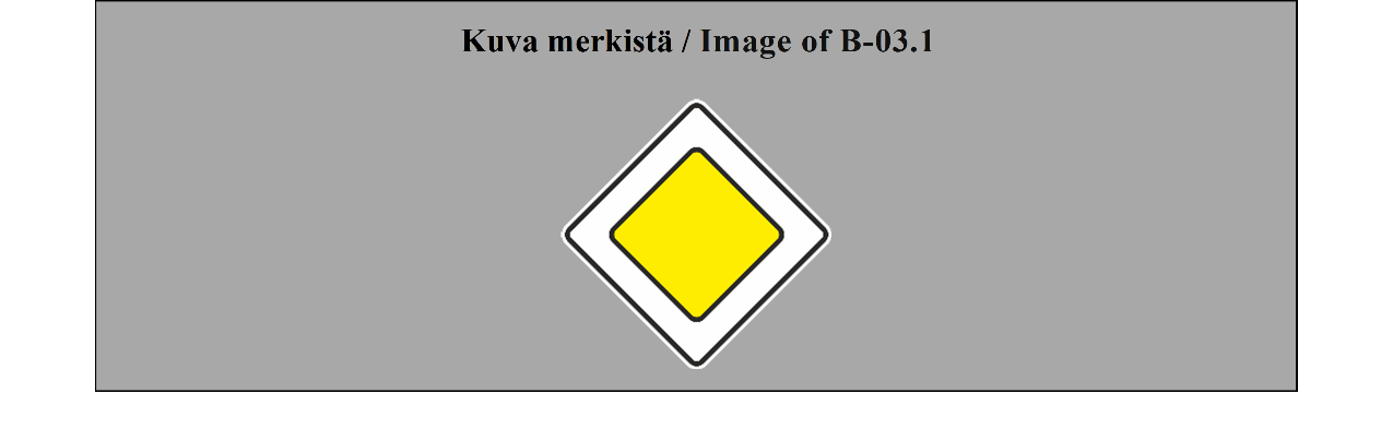 SÄÄNTELYMERKIT 10 ARTIKLA Etuajo-oikeutta sääntelevät merkit 1. Merkit, jotka osoittavat tai ilmoittavat tienkäyttäjille risteyksissä voimassa olevat erityiset etuajo-oikeussäännöt, esitetään liitteessä 1 olevan B osan 1–4 kohdassa. 2. Jos mahdollista, liitteessä 1 olevan B osan 1 kohdassa (VÄISTÄ) ja 2 kohdassa (STOP) kuvatut merkit on asetettava risteykseen siihen kohtaan, jossa ajo-neuvojen on pysähdyttävä tai jota ne eivät saa väistäessään ylittää. Ne voidaan asettaa risteyksessä muuhun kohtaan, jos toimivaltaiset viranomaiset katsovat sen välttämättömäksi. Merkkiä STOP on käytettävä vain, jos toimivaltaiset viranomaiset pitävät tarpeellisena velvoittaa kuljettajat pysähtymään etenkin huonon näkyvyyden takia niille risteävän tien osille, jotka ovat risteyksen jommallakummalla puolella. 3. Liitteessä 1 olevan B osan 3 kohdassa kuvattu merkki (ETUAJO-OIKEUTETTU TIE) voidaan sijoittaa tien alkuun ja toistaa jokaisen risteyksen jälkeen; se voidaan myös sijoittaa ennen risteystä tai risteykseen. 4. Liitteessä 1 olevan B osan 4 kohdassa kuvattu merkki (ETUAJO-OIKEUDEN PÄÄTTYMINEN) on sijoitettava ennen paikkaa, jossa liitteessä 1 olevan B osan 3 kohdassa kuvatun merkin (ETUAJO-OIKEUTETTU TIE) vaikutus päättyy. 5. Liitteessä 1 olevan B osan 4 kohdassa kuvattu merkki (ETUAJO-OIKEUDEN PÄÄTTYMINEN) voidaan toistaa kerran tai useammin ennen kohtaa, jossa etuajo-oikeus lakkaa; tällöin on ennen tätä kohtaa sijoitetussa merkissä tai merkeissä oltava liitteessä 1 olevan H osan 1 kohdassa kuvattu merkki (ETÄISYYS-LISÄKILPI). 6. Jos varoitus risteyksestä on etuajo-oikeutetulla tiellä annettu liitteessä 1 olevan A osan II jakson 19 kohdassa kuvatulla merkillä (RISTEYS VÄISTÄMISVELVOLLISEN TIEN KANSSA) tai jos risteyksessä tie on etuajo-oikeutettu ja sellaiseksi merkitty liitteessä 1 olevan B osan 3 kohdassa kuvatulla merkillä (ETUAJO-OIKEUTETTU TIE), liitteessä 1 olevan B osan 1 kohdassa (VÄISTÄ) ja 2 kohdassa (STOP) kuvatut merkit on sijoitettava risteyksen kaikille muille teille; kyseisten merkkien sijoittaminen ei kuitenkaan ole pakollista sellaisilla teillä kuin poluilla ja tilusteillä, joilla ajavien kuljettajien on näiden merkkien puuttuessakin väistettävä risteyksessä. 7. Merkit, joilla ilmoitetaan tienkäyttäjille etuajo-oikeudesta kapeilla tieosuuksilla, kuvataan liitteessä 1 olevan B osan 5 kohdassa (ETUAJO-OIKEUS KOHTAAVALLA LIIKENTEELLÄ) ja 6 kohdassa (ETUAJO-OIKEUS KOHTAAVAAN LIIKENTEESEEN NÄHDEN). | REGULATORY SIGNS ARTICLE 10 Priority signs 1. The signs for notifying or informing road users of the special rules of priority at intersections are described in Annex 1, section B, paragraphs 1 to 4. 2. The signs described in Annex 1, section B, paragraphs 1 (GIVE WAY) and 2 (STOP) shall be placed at the intersection, if possible level with the point at which vehicles must stop or beyond which they must not pass when giving way. They may be placed elsewhere than at an intersection if the competent authorities consider it necessary. The STOP sign shall be set up only if the competent authorities consider it advisable to require drivers to stop, in particular because of the poor visibility, for drivers, of the sections of the road, on either side of the intersection, which they are approaching. 3. The sign described in Annex 1, section B, paragraph 3 (PRIORITY ROAD) may be placed at the beginning of the road and repeated after each intersection; it may also be set up before or at the intersection. 4. The sign described in Annex 1, section B, paragraph 4 (END OF PRIORITY) shall be placed at the approach to the point from where the sign of Annex 1, section B, paragraph 3 (PRIORITY ROAD) ceases to apply. 5. The sign of Annex 1, section B, paragraph 4 (END OF PRIORITY) may be repeated one or more times in advance of the point where the priority ends; the sign or signs set up in advance of that point shall be placed together with an additional panel described in Annex 1, section H, paragraph 1 (DISTANCE PANEL). 6. If warning of an intersection is given on a priority road by danger warning signs described in Annex 1, section A, subsection II, paragraph 19 (INTERSECTION WITH A GIVE WAY ROAD), or if at the intersection the road is a priority road and has been signposted as such by the sign described in Annex 1, section B, paragraph 3 (PRIORITY ROAD), the signs described in Annex 1, section B, paragraphs 1 (GIVE WAY) and 2 (STOP) shall be placed at the intersection on all the other roads; however, the placing of those signs shall not be mandatory on roads such as paths or earth-tracks where drivers are required to give way at the intersection even in the absence of such signs. 7. The signs for informing road users of a rule of priority on narrow sections of road are described in Annex 1, section B, paragraphs 5 (PRIORITY FOR ONCOMING TRAFFIC) and 6 (PRIORITY OVER ONCOMING TRAFFIC). |
