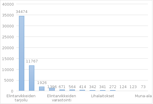 Viranomaisvalvonnan piirissä olevia elintarvike- ja kontaktimateriaaliyrityksiä oli vuonna 2017 yhteensä 52 488 kpl. Alkutuotannon toimijoita oli 10 098 kpl.