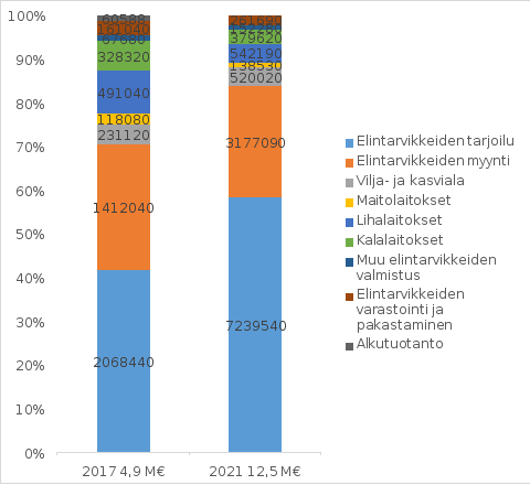 Kuva 1: Viranomaisvalvonnan piirissä olevat elintarvike- ja kontaktimateriaaliyritykset 2017