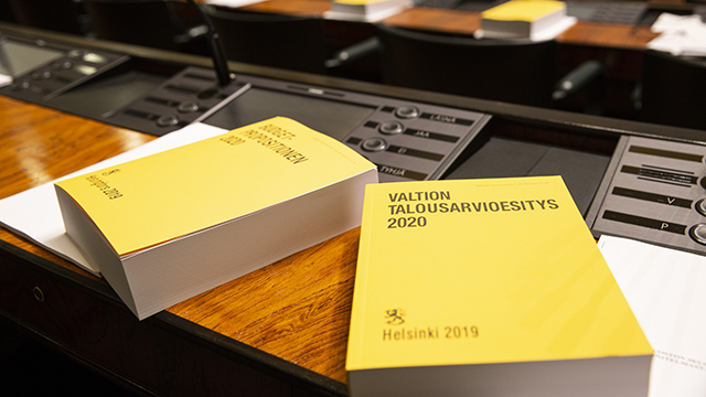 Riksdagen inledde responsdebatten om statsbudgeten för 2020 tisdag den 17 december. Budgetbehandlingen avslutades efter omröstningar i höstsessionens sista plenum fredagen den 20 december. Riksdagen godkände alla huvudtitlar enligt finansutskottets betänkande (FiUB 20/2019).