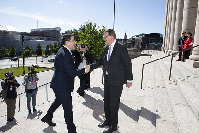 Talmannen för Georgiens parlament Shalva Papuashvili besökte riksdagen onsdagen den 15 juni. Värd för besöket var riksdagens talman Matti Vanhanen.