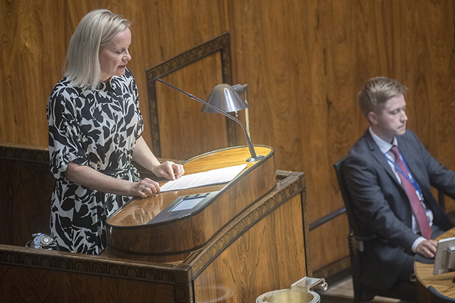 Förvaltningsutskottets betänkande presenterades i plenum av utskottets ordförande Riikka Purra (saf).
