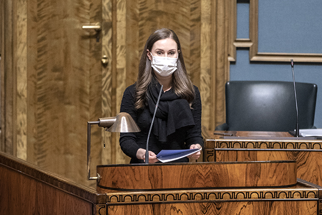 Statsminister Marin konstaterade att hörnstenen i regeringens EU-politik är de gemensamma värderingarna. ”Målet är ett socialt, miljömässigt och ekonomiskt hållbart EU. EU ska vara en stark global aktör och säkerhetsgemenskap. Samtidigt ska unionens egen verksamhet och Finlands inflytande på unionsnivå utvecklas aktivt”, sade Marin.