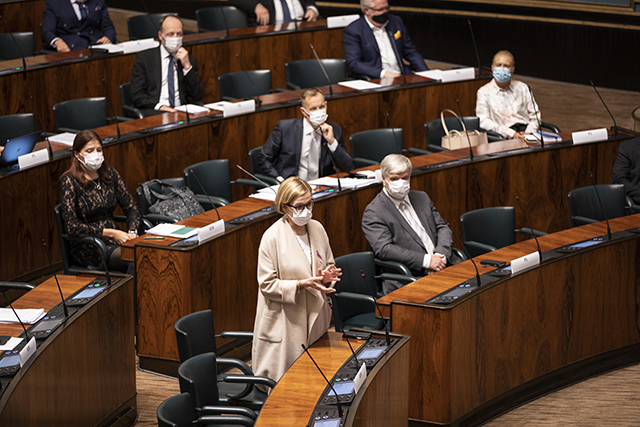 Riksdagen förde tisdagen den 9 februari remissdebatt om temporär ändring av lagen om smittsamma sjukdomar (RP 6/2021). Genom ändringen förlängs giltighetstiden för bestämmelserna om begränsningar av förplägnadsverksamheten.