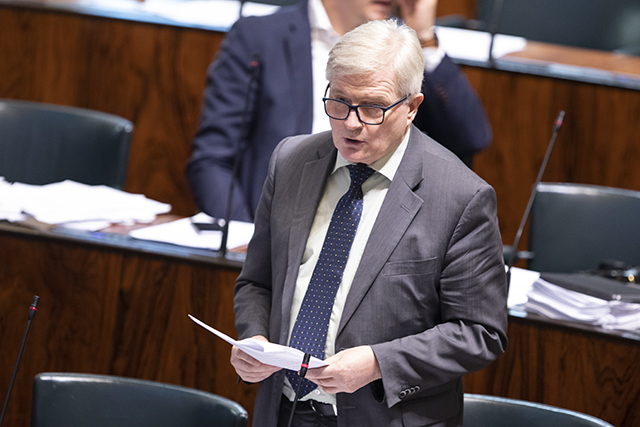 Finansutskottets ordförande Johannes Koskinen (sd) presenterade utskottets betänkande i plenum torsdagen den 25 juni.