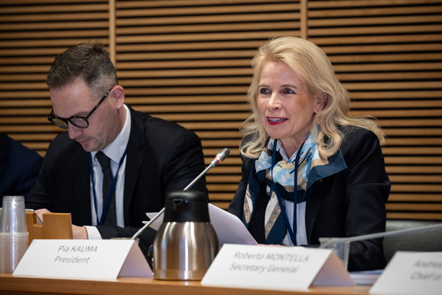 – Finland har nu en sällsynt möjlighet att främja samarbetet mellan OSSE:s parlamentariska och mellanstatliga sida då ordförandena för både den parlamentariska församlingen och den mellanstatliga sidan är finländska, konstaterade Pia Kauma vid mötet.