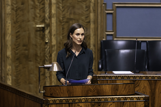 Statsministern återgav för riksdagen diskussioner om åtgärder på EU-nivå mot stigande energipriser och för att trygga tillgången till energi. I det exceptionella läget kan inga alternativ uteslutas, konstaterade Marin. Statsministern redogjorde också för regeringens åtgärder för att stävja prisstegringen och öka självförsörjningen, och beskrev hur problemen på derivatmarknaden är kopplade till energikrisen i Finland.