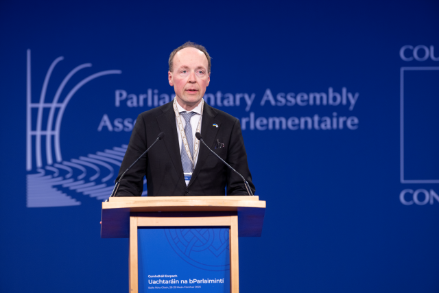Riksdagens talman Jussi Halla-aho talade vid Europarådets medlemsländers parlaments talmanskonferens om följderna av Rysslands anfallskrig och återuppbyggnaden av Ukraina. Halla-aho betonade i sitt anförande att stödet åt Ukraina är orubbligt och vädjade att påskynda stödåtgärderna.
