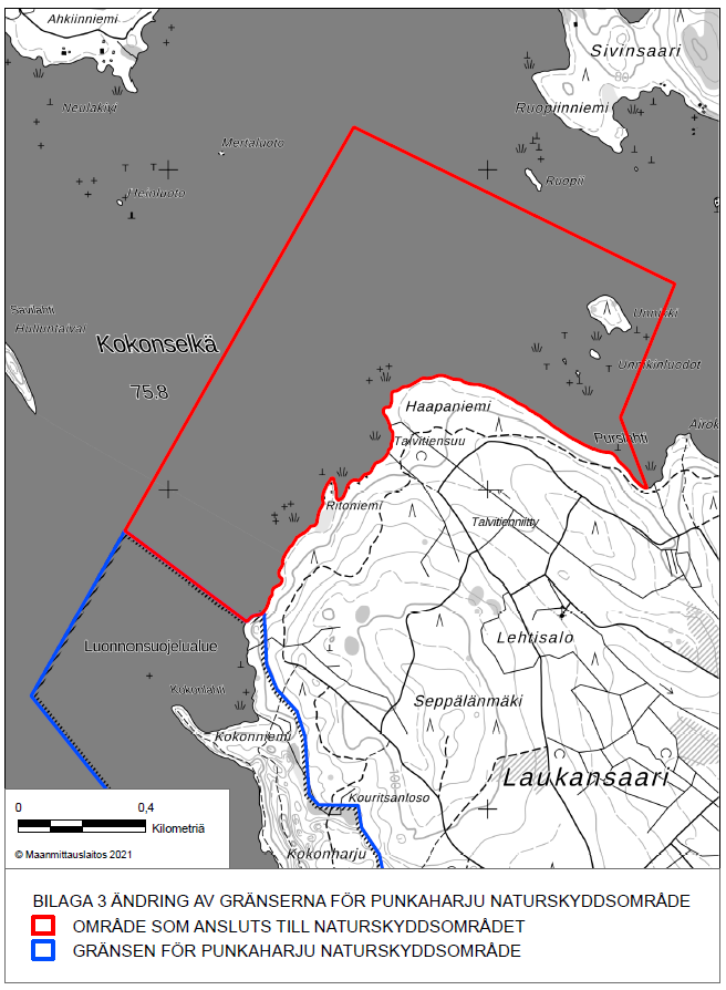 Regeringens proposition till riksdagen med förslag till lag om ändring av gränserna för Punkaharju naturskyddsområde (RP 130/2021 rd).