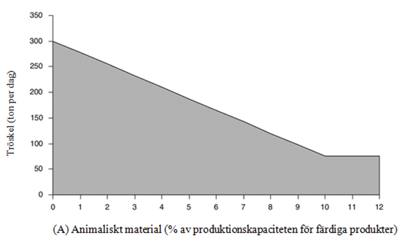 där A är andelen animaliskt material (i viktprocent) av produktionskapaciteten för färdiga produkter.