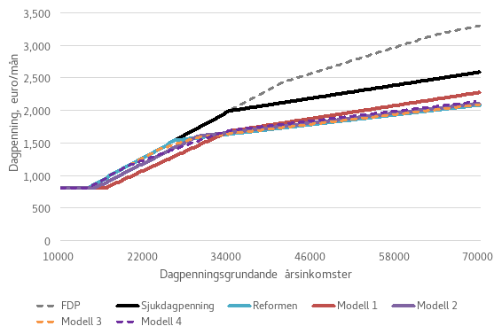 Förslaget om sjukdagpenningens belopp i propositionen (ändring av beräkningsformeln för sjukdagpenningen) påverkar utkomsten för personer som anses vara arbetsoförmögna och som tjänar över 27 633 euro per år under arbetsoförmögenheten. Ändringen av beräkningsformeln gäller följaktligen inte för personer med de lägsta inkomsterna och inte mottagare av en dagpenningförmån till minimibelopp. Ändringen av beräkningsformeln påverkar inte heller situationen för de förmånstagare som får sjukdagpenning eller en annan förmån som räknas med beräkningsformeln för sjukdagpenning utifrån en helt annan förmån