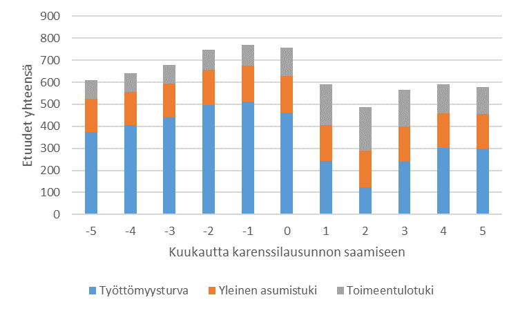 Eftersom arbetet i ovan nämnda situationer kunde ha fortgått på arbetsgivarens vägnar, är tiden utan ersättning längre än när arbetsgivaren avslutar anställningsförhållandet. Om arbetsgivaren avslutar anställningsförhållandet av en orsak som beror på arbetstagaren, är tiden utan ersättning 60 dagar. En tid utan ersättning föreläggs inte till exempel när arbetet upphör genom uppsägning av produktionsorsaker eller ekonomiska orsaker eller när upphörandet av anställningsförhållandet inte beror på arbetstagarens klandervärda förfarande på det sätt som avses i lagen om utkomstskydd för arbetslösa.