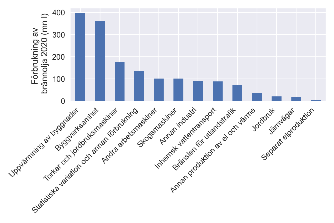 Figur 3. Användning av lätt brännolja för olika ändamål 2020 (Källa: Statistikcentralen)