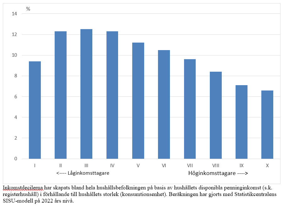 År 2021 fick sammanlagt 288 223 hushåll utkomststöd. Av alla hushåll som fick utkomststöd utgjorde andelen ensamförsörjare 10,9 procent och andelen äkta makar eller sambor med barn 7,2 procent av de hushåll som fick utkomststöd. Sammanlagt fanns det 52 150 barnfamiljer som behövde utkomststöd under året och i dem bodde sammanlagt 101 521 barn under 18 år. Barnbidraget var inkomst för omkring 15 procent av de hushåll som fick utkomststöd i november 2021, det vill säga totalt 25 510 familjer. (på finska)Toimeentulotuen vuositilasto 2021 THL Antalet stödtagare i december är för närvarande lika stort som i genomsnitt per år. I de familjer som får utkomststöd bor oftast 1 eller 2 barn.