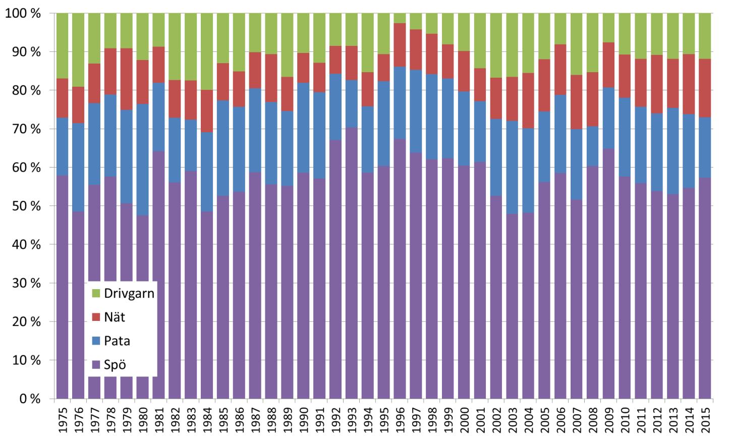 1) Konstatert fiskedødelighet i en bestand er over 5 % mer enn forutsatt.