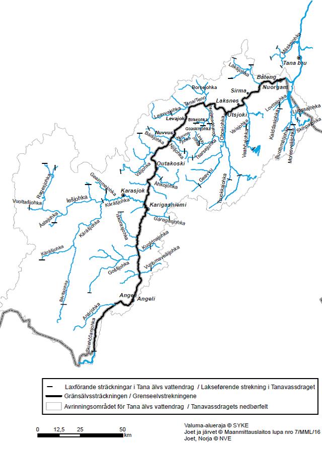 Váljohkas laksebestand; redusert fisketid fra Váljohkas munning nordover på grenseelvstrekningen: