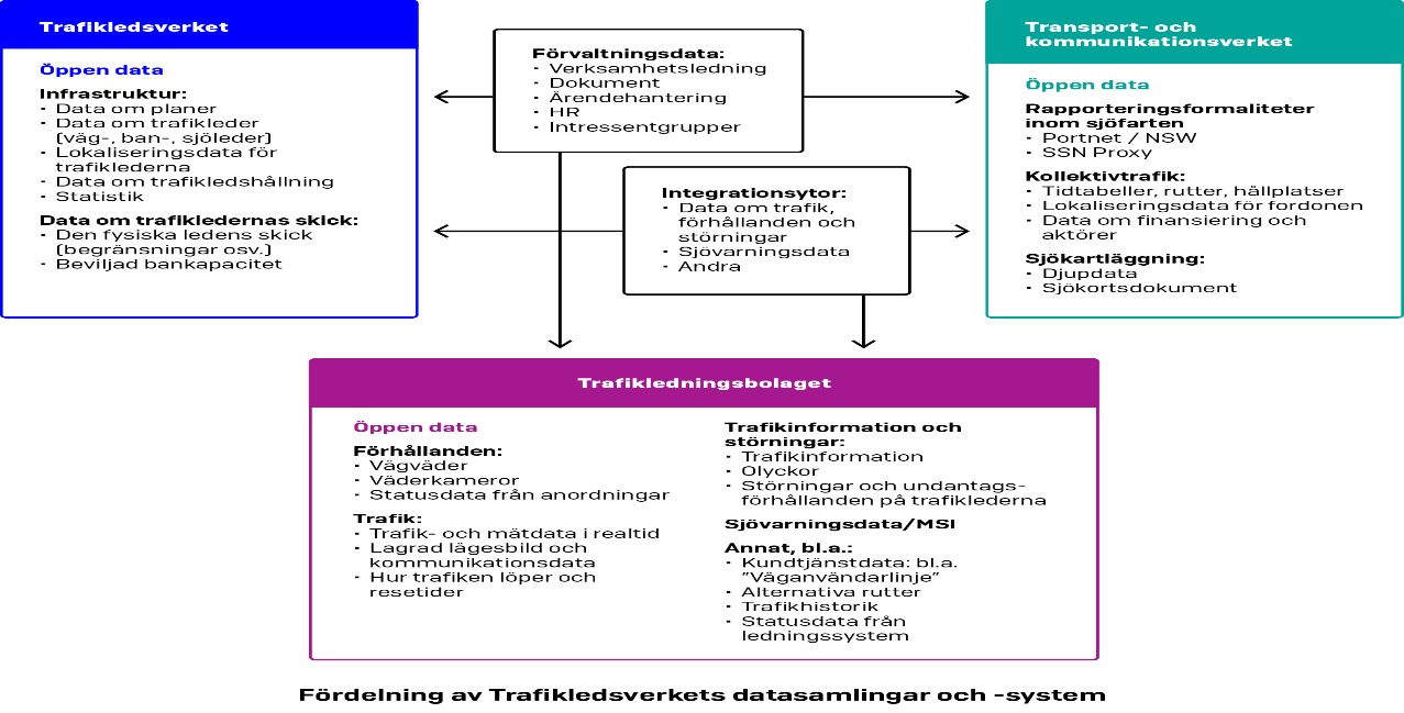 Uppgiftsfördelningen i anslutning till ITS-direktivet (Europaparlamentets och rådets direktiv 2010/40/EU om ett ramverk för införande av intelligenta transportsystem på vägtransportområdet och för gränssnitt mot andra transportslag) inom kommunikationsministeriets förvaltningsområde förtydligas så att Transport- och kommunikationsverket svarar för utvecklingsarbetet som gäller intelligenta transporter på riksomfattande och strategisk nivå och för internationell påverkan och intressebevakning i anslutning därtill. Trafikledsverkets uppgift ska vara att utveckla trafikledsnätets fysiska och digitala infrastruktur och att främja automatiseringen av transporterna i egenskap av innehavare av trafikledsnätet.