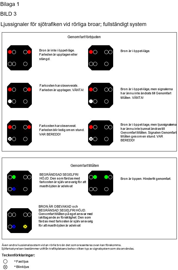 7) de i 33 § avsedda förfaranden som ska iakttas i kanaler och i trafik via rörliga broar, eller