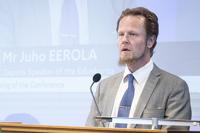 Eerola piti avauspuheenvuoron parlamentaarisessa turvapaikka- ja maahanmuuttoasioiden kokouksessa Helsingissä 9. syyskuuta. Kokous on yksi eduskunnan järjestämistä EU-puheenjohtajakauden kokouksista. Kokouksessa käsitellään tämänhetkistä turvapaikkapolitiikan ja rajavalvonnan tilannetta.